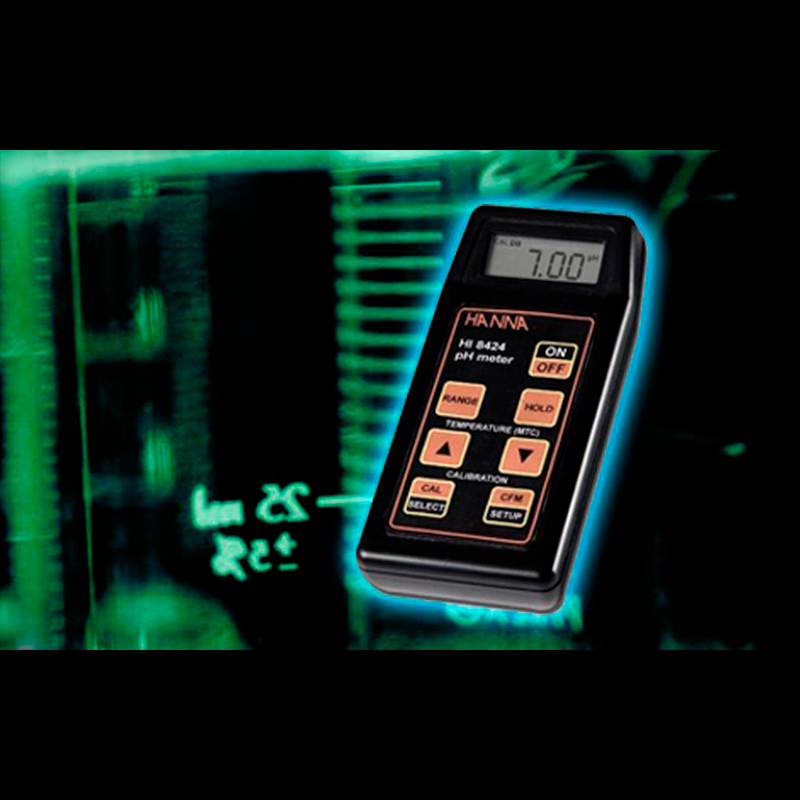 Con el medidor de pH portátil HI 8424, uno de los medidores de pH más populares en el mercado, puede conseguir los mismos resultados que con un medidor de laboratorio con microprocesador de primerísima línea. Utilizando un avanzado microprocesador personalizado, el HI 8424 es capaz de realizar mediciones de pH, ORP, ISE y temperatura con gran precisión y rapidez. Las mediciones de mV cambian automáticamente de resolución 0,1 a 1mV cuando la lectura alcanza 400mV. La temperatura se compensa automática o manualmente, de 0 a 100°C (32 a 212°F). El medidor tiene 3 valores tampón memorizados (pH 4,01, 7,01, 10,01), y reconoce el tampón automáticamente para evitar errores durante la calibración. Para simplificar más, si cabe, la calibración, los potenciómetros han sido eliminados y ahora la calibración se realiza pulsando un botón.
