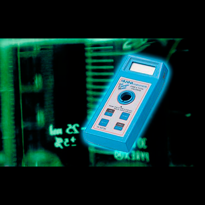 La línea de Hanna incluye kits de análisis colorimétricos, que miden tanto el Cloro Libre como el Total (véase sección A). Los instrumentos con microprocesador incorporado que presentamos en esta sección le proporcionan una mayor resolución, mayor precisión y resultados inmediatos. Dispone de tres modelos diferentes entre los que elegir: HI 93701 para medir el cloro libre HI 93711 para cloro libre (0 a 2,5 mg/l) y cloro total (0 a 3,5 mg/l). Para aplicaciones que requieran un rango de medición más amplio, Hanna también ofrece el HI 93734 que mide tanto el cloro libre como total de 0,0 a 10,0 mg/l. Presenta una pantalla inclinada con grandes dígitos. Sus mediciones son simples, rápidas, baratas y efectivas con incrementos de 0,01mg/l y es muchas veces mejor que los kits de análisis más sofisticados. Además de nuestras populares bolsitas de reactivo en polvo, dispone de reactivos líquidos pre-estandarizados.